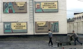 Настенная агитация на территории лагеря для пожизненного заключения.
