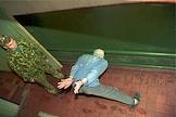 Разносчик обедов в коридоре корпуса зоны для пожизненного заключения.
