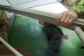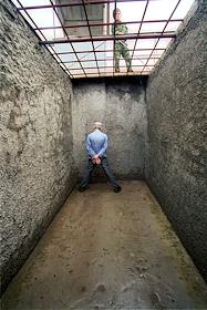 Производится досмотр заключенного в зоне пожизненного заключения.