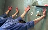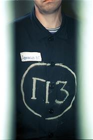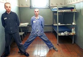 Заключенный во время досмотра перед надзирателями в зоне пожизненного заключения.