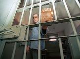 Заключенный за решеткой в зоне для пожизненно заключенных.
