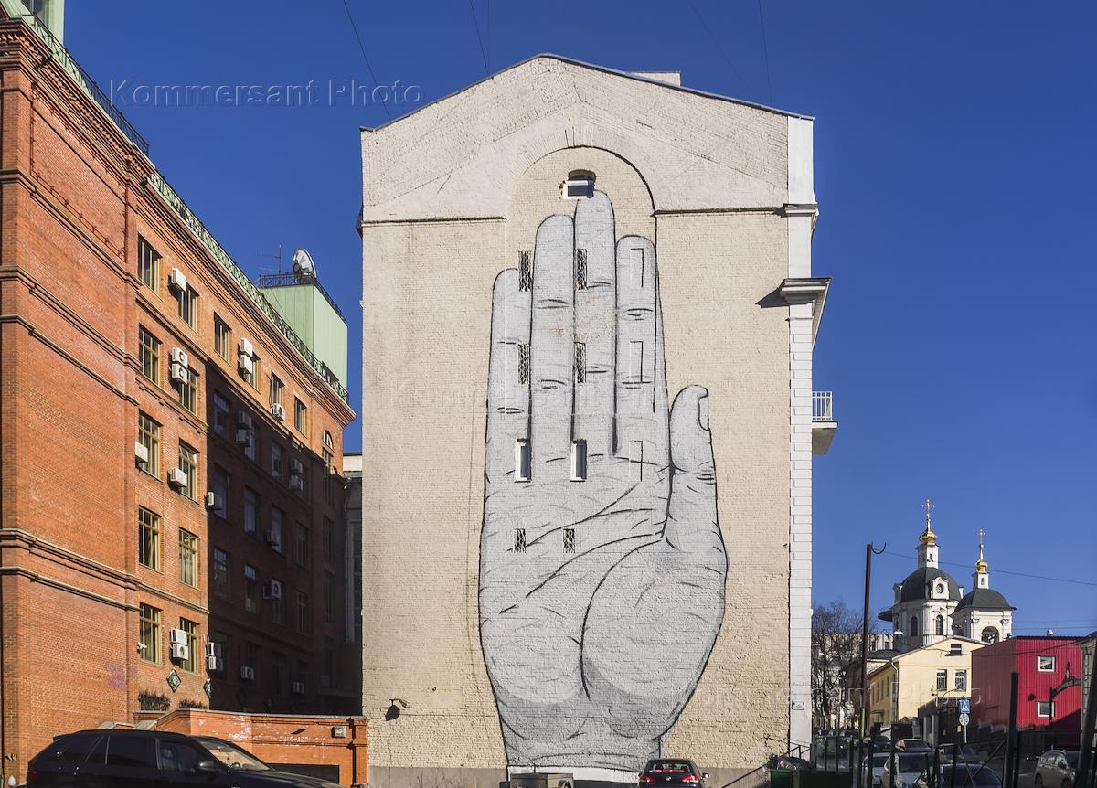 Виды Москвы. Граффити на стене жилого дома в Звонарском переулке.