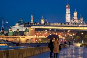 Виды Москвы. Пешеходная зона на Якиманской набережной.