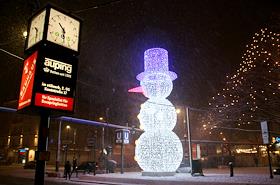Виды Берлина. Рождественская иллюминация в виде Снеговика на улице Курфюрстендамм.