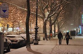 Виды Берлина. Снегопад на улице Курфюрстендамм.