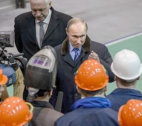 Рабочая поездка президента России Владимира Путина в Тверскую область. Сотрудники Тверского вагоностроительного завода.
