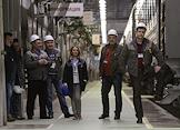 Рабочая поездка президента России Владимира Путина в Тверскую область. Президент России Владимир Путин (в центре) и генеральный директор ОАО "Тверской вагоностроительный завод" Андрей Соловей (третий справа) во время встречи с рабочими Тверского вагоностроительного завода.