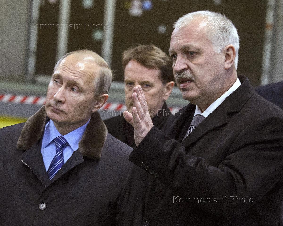 Рабочая поездка президента России Владимира Путина в Тверскую область. Президент России Владимир Путин (справа) и генеральный директор ОАО "Тверской вагоностроительный завод" Андрей Соловей (слева) во время посещения Тверского вагоностроительного завода.