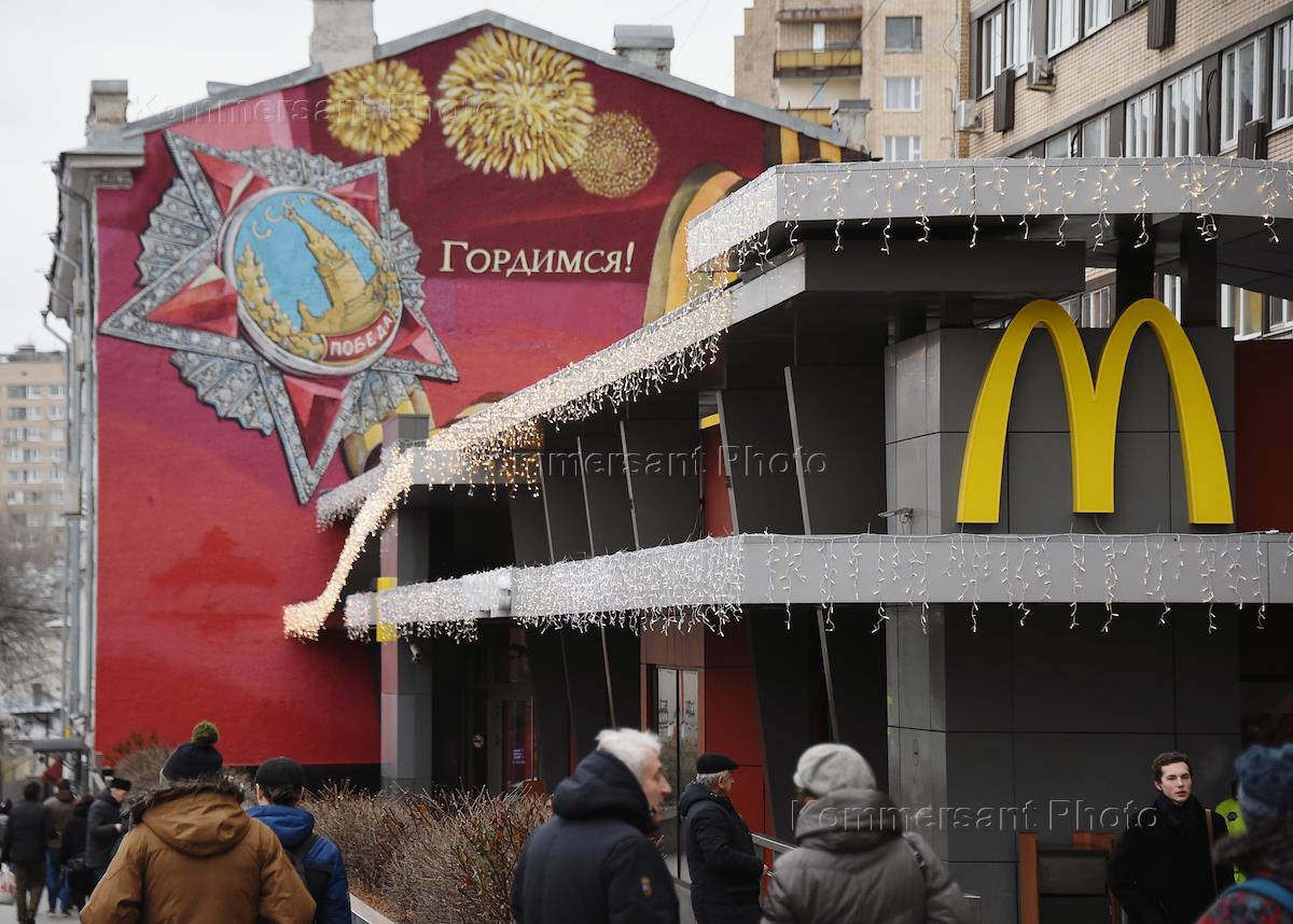 Genre photo. Customers by the counter with Christmas tree ornaments in the Central Department Store (TSUM).