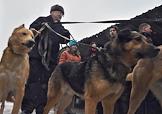 Приют для бездомных собак "Красная сосна". Сотрудники приюта с собаками во время посещения приюта лидером Либерально-демократической партии России (ЛДПР) Владимиром Жириновским.