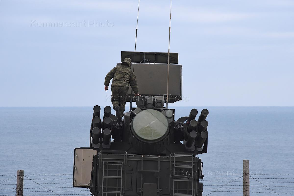 Боевые расчеты зенитных ракетных комплексов (ЗРК) С-400 "Триумф" из состава зенитного ракетного полка соединения противовоздушной обороны армии ВВС и ПВО Южного военного округа заступили на боевое дежурство по противовоздушной обороне на мысе Фиолент. Зенитный ракетно-пушечный комплекс "Панцирь-С".