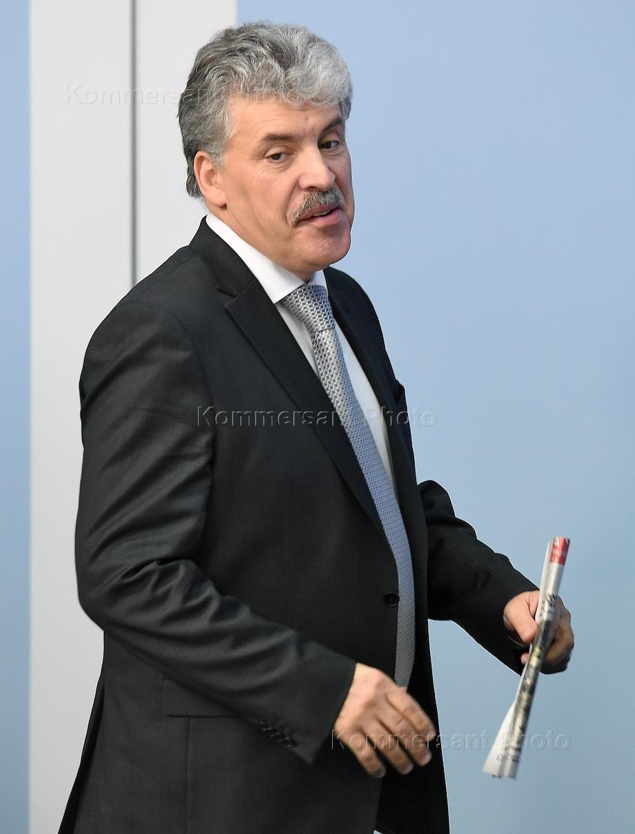 Пресс-конференция, посвященная подготовке Коммунистической партии России (КПРФ) к выборам президента России в марте 2018 года, прошла в агентстве ТАСС. Кандидат на пост президента России от КПРФ Павел Грудинин во время пресс-конференции.