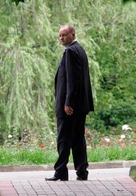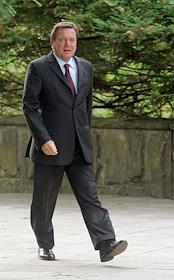 Канцлер ФРГ Герхард Шредер перед началом трехсторонних переговоров между президентами России, Франции, Германии. Переговоры состоялись в резиденции Президента России "Бочаров ручей".