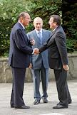 Президент Франции Жак Ширак (слева), канцлер ФРГ Герхард Шредер (справа) и Президент России Владимир Путин (в центре) перед началом трехсторонних переговоров. Переговоры состоялись в резиденции Президента России "Бочаров ручей".