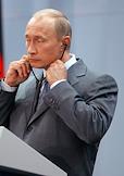 Президент России Владимир Путин во время трехсторонних переговоров. Переговоры состоялись в резиденции Президента России "Бочаров ручей".