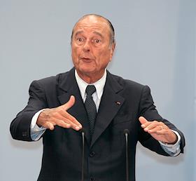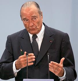 Президент Франции Жак Ширак во время трехсторонних переговоров между президентами России, Франции, Германии. Переговоры состоялись в резиденции Президента России "Бочаров ручей".