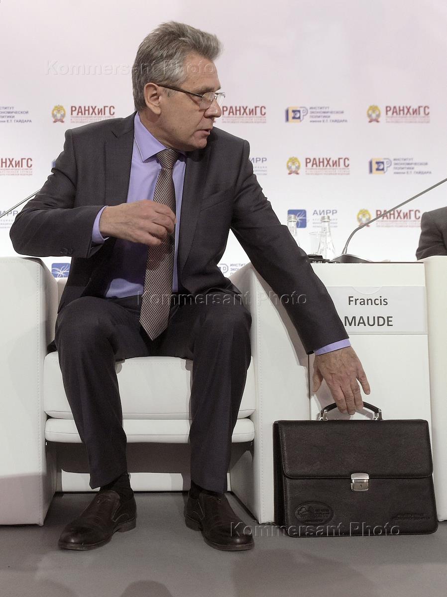 Гайдаровский форум "Россия и мир: цели и ценности" прошел в Российской академии народного хозяйства и государственной службы (РАНХиГС) при президенте России. День второй. Директор Francis Maude Associates LLP, государственный министр торговли и инвестиций Великобритании (2015–2016 гг.) лорд Фрэнсис Мод во время заседания форума.