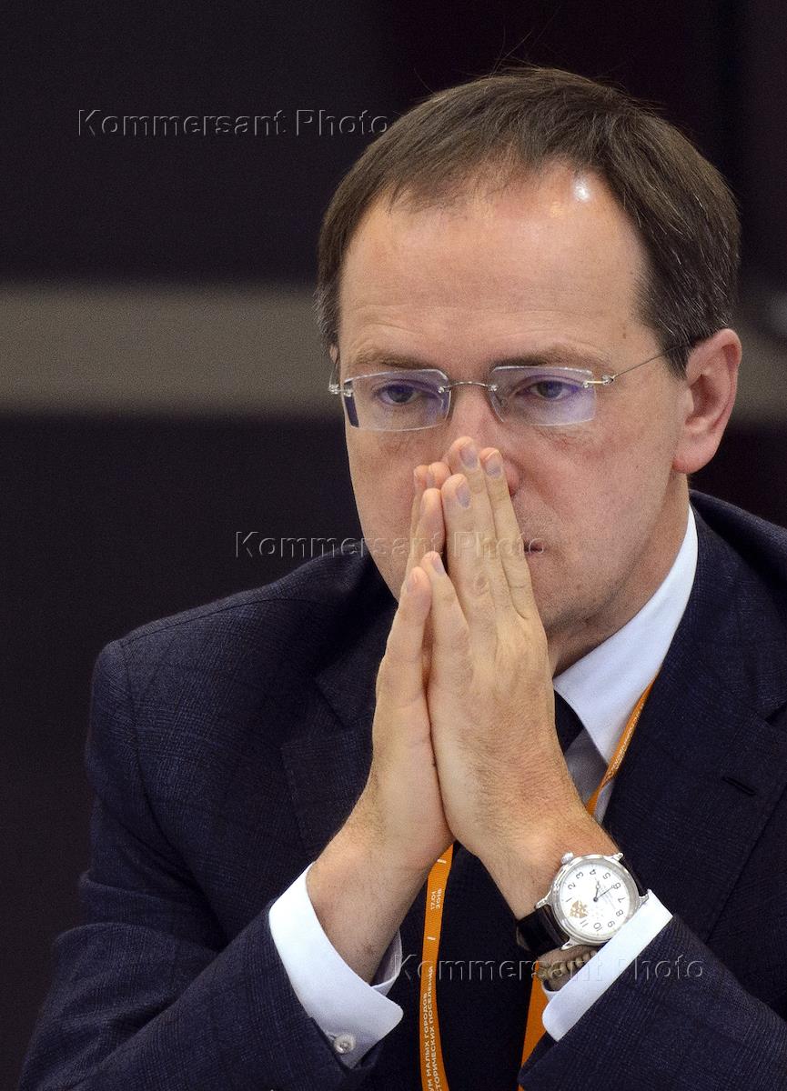 Рабочая поездка президента России Владимира Путина в Коломну. Министр культуры России Владимир Мединский на встрече с участниками Форума малых городов и исторических поселений.