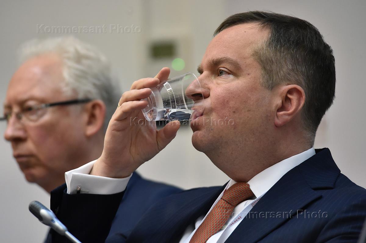 IX Гайдаровский форум "Россия и мир: цели и ценности" прошел в Российской академии народного хозяйства и государственной службы (РАНХиГС) при президенте России. День второй. Председатель комитета Государственной думы России по бюджету и налогам Андрей Макаров (слева) и ректор РАНХиГС Владимир Мау (справа) во время форума.