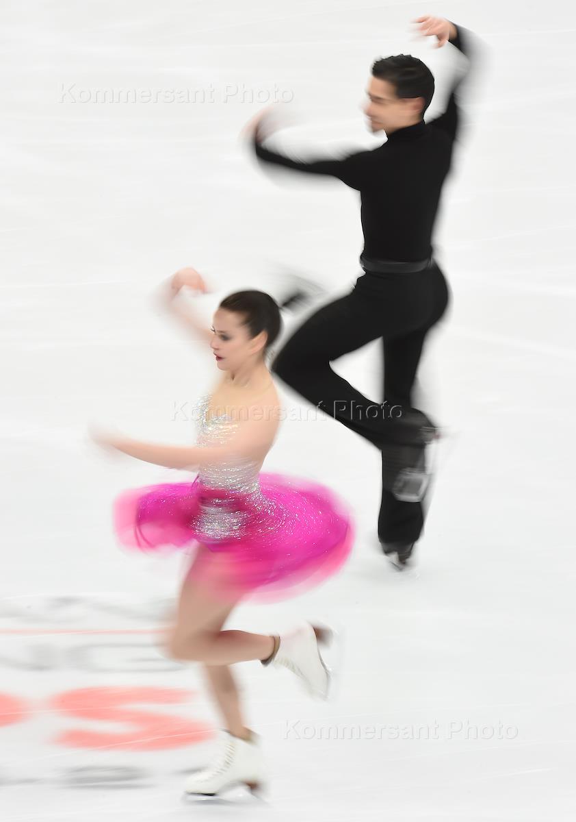Чемпионат Европы по фигурному катанию под эгидой Международного союза конькобежцев (ISU). День третий. Фигуристы Тиффани Загорски и Джонатан Гурейро (Россия) во время выступления в короткой программе танцев на льду.