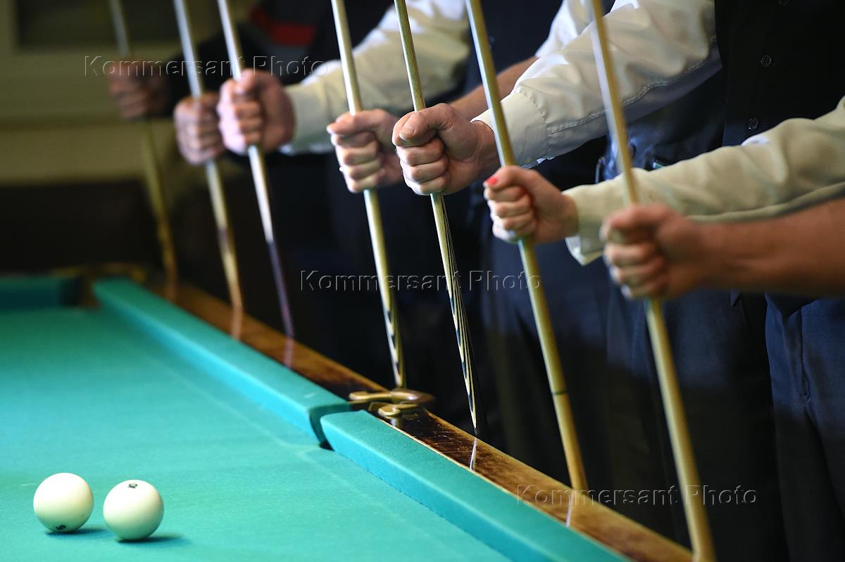Отделение бильярдного спорта поселка Пугачевский. Жанровая фотография. Игра на бильярде.