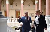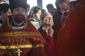 Ректор Московского государственного университета (МГУ) имени Ломоносова Виктор Садовничий (слева) и декан факультета журналистики МГУ имени Ломоносова Елена Вартанова (справа) перед началом литургии Патриарха Московского и Всея Руси Кирилла в Храме Святой мученицы Татианы при МГУ имени Ломоносова.