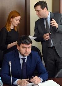 Заседание Комитета Государственной Думы (ГД) России по делам национальностей "Об итогах реализации Государственной программы Российской Федерации "Реализация государственной национальной политики" в 2017 году" прошло в ГД России. Слева направо: председатель комитета ГД по делам национальностей Ильдар Гильмутдинов, глава Федерального агентства по делам национальностей России Игорь Баринов и первый заместитель председателя Комитета ГД по делам национальностей Михаил Старшинов во время заседания.