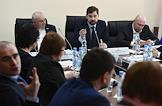 Заседание Комитета Государственной Думы (ГД) России по делам национальностей "Об итогах реализации Государственной программы Российской Федерации "Реализация государственной национальной политики" в 2017 году" прошло в ГД России. Советник Управления внутренней политики администрации президента России Сергей Баах (в центре) во время заседания.