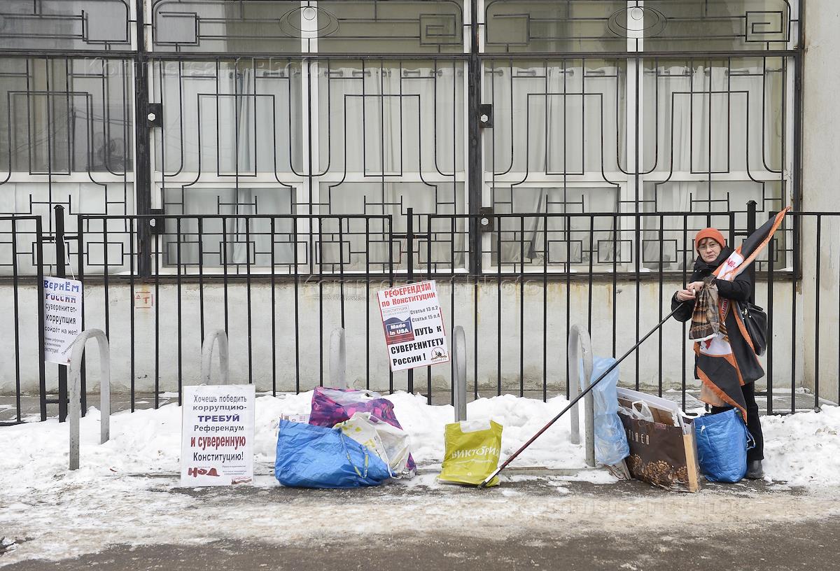 Акция сторонников Алексея Навального в рамках объявленной политиком "забастовки избирателей" прошла на Тверской улице. Пикетчица с плакатом перед началом акции.