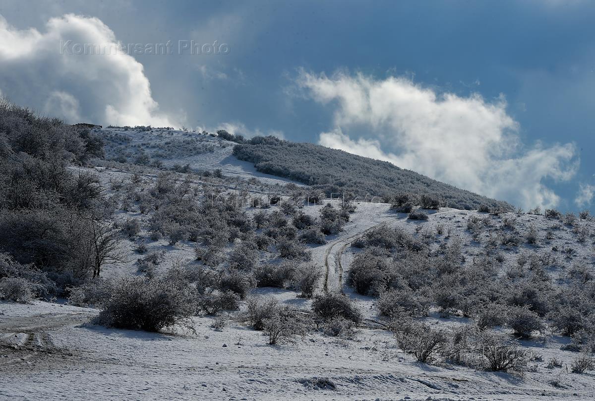 Жанровая фотография. Заснеженный каменистый склон.