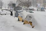 Жанровая фотография. Снегопад в Москве. Люди пробираются через дорогу, где не почистили снег.