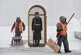Жанровая фотография. Снегопад в Москве. Сотрудники коммунальной службы убирают снег на территории поста Почетного краула у Вечного огня на могиле "Неизвестного солдата" в Александровском саду.