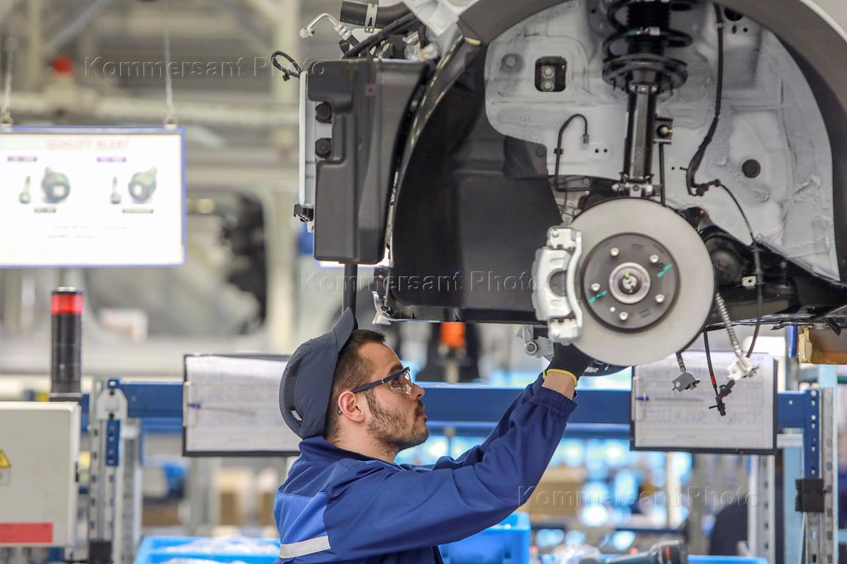 Жанровая фотография. Завод Hyundai Motor Manufacturing Rus в Санкт-Петербурге. Рабочие в цеху завода.