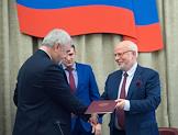 Специальное заседание Совета при президенте России по правам человека (СПЧ ) по теме "Роль гражданского общества в развитии донорства". Руководитель Федерального медико-биологического агентства Владимир Уйба (слева) и председатель Общероссийской общественной организации "Российский Красный Крест" Раиса Лукутцова во время заседания.