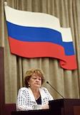 Специальное заседание Совета при президенте России по правам человека (СПЧ ) по теме "Роль гражданского общества в развитии донорства". Председатель Общероссийской общественной организации "Российский Красный Крест" Раиса Лукутцова во время заседания.