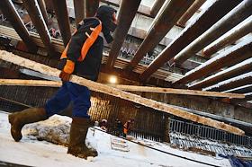 Осмотр мэром Москвы Сергеем Собяниным строительства станции метро "Юго-Восточная" Кожуховской линии московского метрополитена, которую планируют открыть в 2019 году в составе участка "Авиамоторная" - "Некрасовка". Рабочие во время отдыха в бытовке.