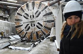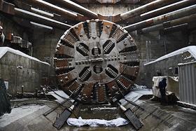 Осмотр мэром Москвы Сергеем Собяниным строительства станции метро "Юго-Восточная" Кожуховской линии московского метрополитена, которую планируют открыть в 2019 году в составе участка "Авиамоторная" - "Некрасовка". Проходческий щит.