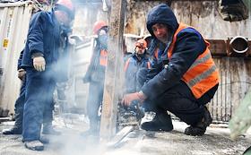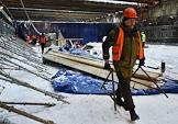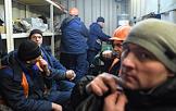 Осмотр мэром Москвы Сергеем Собяниным строительства станции метро "Юго-Восточная" Кожуховской линии московского метрополитена, которую планируют открыть в 2019 году в составе участка "Авиамоторная" - "Некрасовка". Рабочие во время отдыха в бытовке.