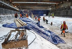 Осмотр мэром Москвы Сергеем Собяниным строительства станции метро "Юго-Восточная" Кожуховской линии московского метрополитена, которую планируют открыть в 2019 году в составе участка "Авиамоторная" - "Некрасовка". Тоннель.