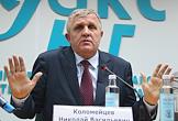 Пресс-конференция кандидата на пост президента России от КПРФ и народно-патриотических сил, директора ЗАО "Совхоз имени Ленина" Павла Грудинина в информационном агентстве "Интерфакс-Юг". Первый заместитель председателя комитета Государственной думы России по труду, социальной политике и делам ветеранов Николай Коломейцев во время пресс-конференции.