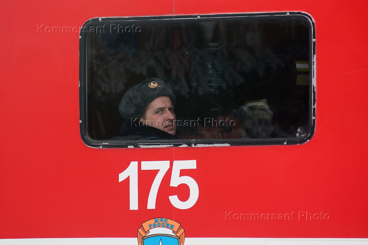 Сотрудники пожарной службы во время тушения пожара в Музея ветеранов Афганистана в центре города. Жанровая фотография. Полицейский в окне автомобиля.