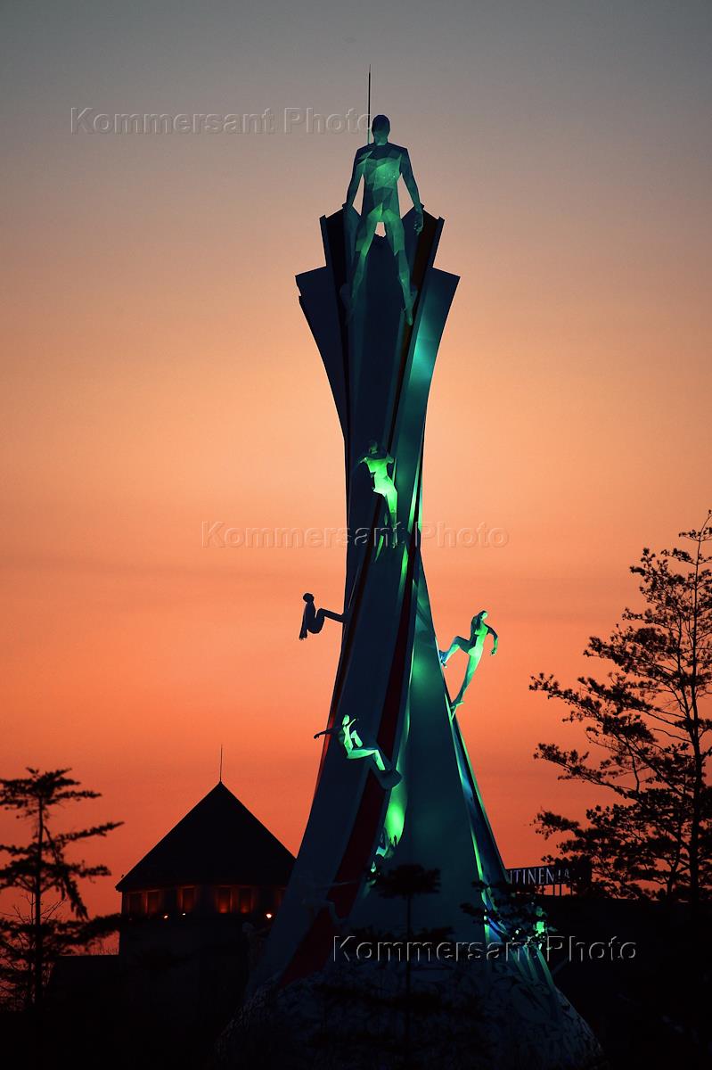 XXIII Зимние Олимпийские игры в Пхенчхане. Монумент "Люди-пули" в Олимпийской деревне.