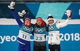 XXIII Зимние Олимпийские игры в Пхенчхане. Биатлон. Женщины. Спринт 7,5 км. Соревнования прошли в Центре биатлона Альпензия. Слева напрво: член сборной Норвегии Марте Олсбу, член сборной Германии Лаура Дальмайе и член сборной Чехии Вероника Виткова во время церемонии награждения.