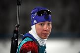 XXIII Зимние Олимпийские игры в Пхенчхане. Биатлон. Женщины. Спринт 7,5 км. Соревнования прошли в Центре биатлона Альпензия. Российская спортсменка Татьяна Акимова на огневом рубеже спринтерской гонки.