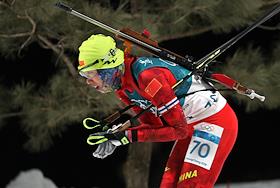 XXIII Зимние Олимпийские игры в Пхенчхане. Биатлон. Женщины. Спринт 7,5 км. Соревнования прошли в Центре биатлона Альпензия. Член сборной Китая Чжан Ян во время гонки.