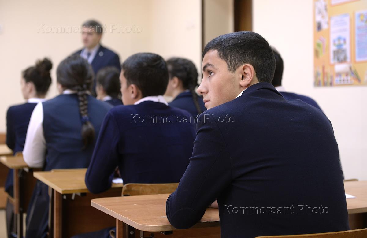 Финал конкурса "Лидеры России". Финалисты конкурса провели открытые уроки лидерства в учащихся старших классов средней школе № 100. Учащиеся во время урока.
