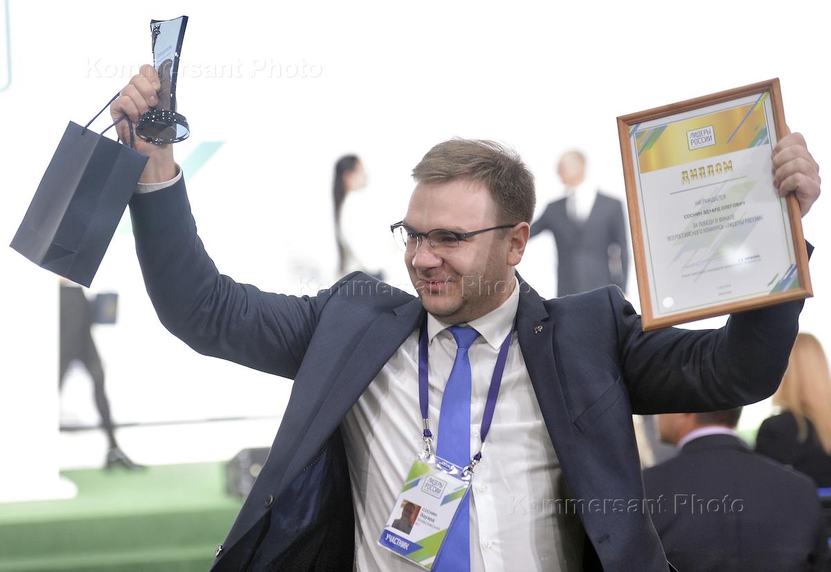 Церемония закрытия финала конкурса "Лидеры России". Победитель конкурса "Лидеры России" Эдуард Соснин во время церемонии.
