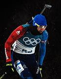 XXIII Зимние Олимпийские игры в Пхенчхане. Спринтерская гонка по биатлону среди мужчин. Спортсмен Мартен Фуркад (Франция) во время соревнования.