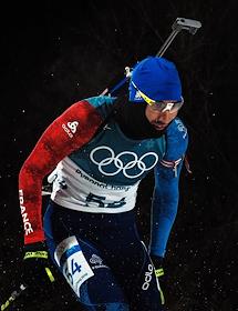 XXIII Зимние Олимпийские игры в Пхенчхане. Спринтерская гонка по биатлону среди мужчин. Спортсмен Антонин Гигонна (Франция) во время соревнования.