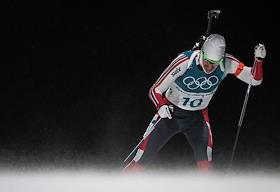 XXIII Зимние Олимпийские игры в Пхенчхане. Спринтерская гонка по биатлону среди мужчин. Спортсмен Эмиль Хегле Свендсен (Норвегия) во время соревнования.
